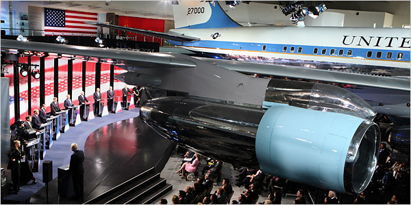 Far more important to NBC News was the circus of clowns cavorting on the rostrum of the Reagan Library that evening. Anybody who was anybody was there. Even Air Force One was in the audience.