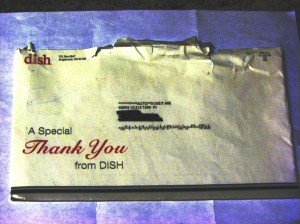 It was from our TV service provider, DishNetwork, and they seemed overcome with gratitude that we were their customer.