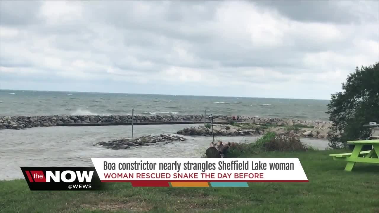 An ambulance was swiftly dispatched to the woman, who was found lying in her driveway in the town of Sheffield Lake with the snake around her neck.