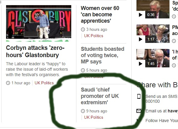 [2] “Saudi Arabia has ‘clear link’ to UK extremism, report says” BBC, July 5th 2017