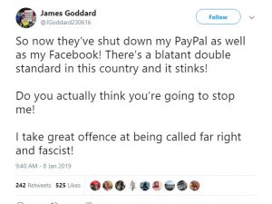 FB have silenced me & I now have journos outside my mums house, all for approaching a politician about her views! I rely on the support of REAL people to carry on doing what we’re doing, if you would like to support me the link is here: paypal.me/JamesGoddard230616